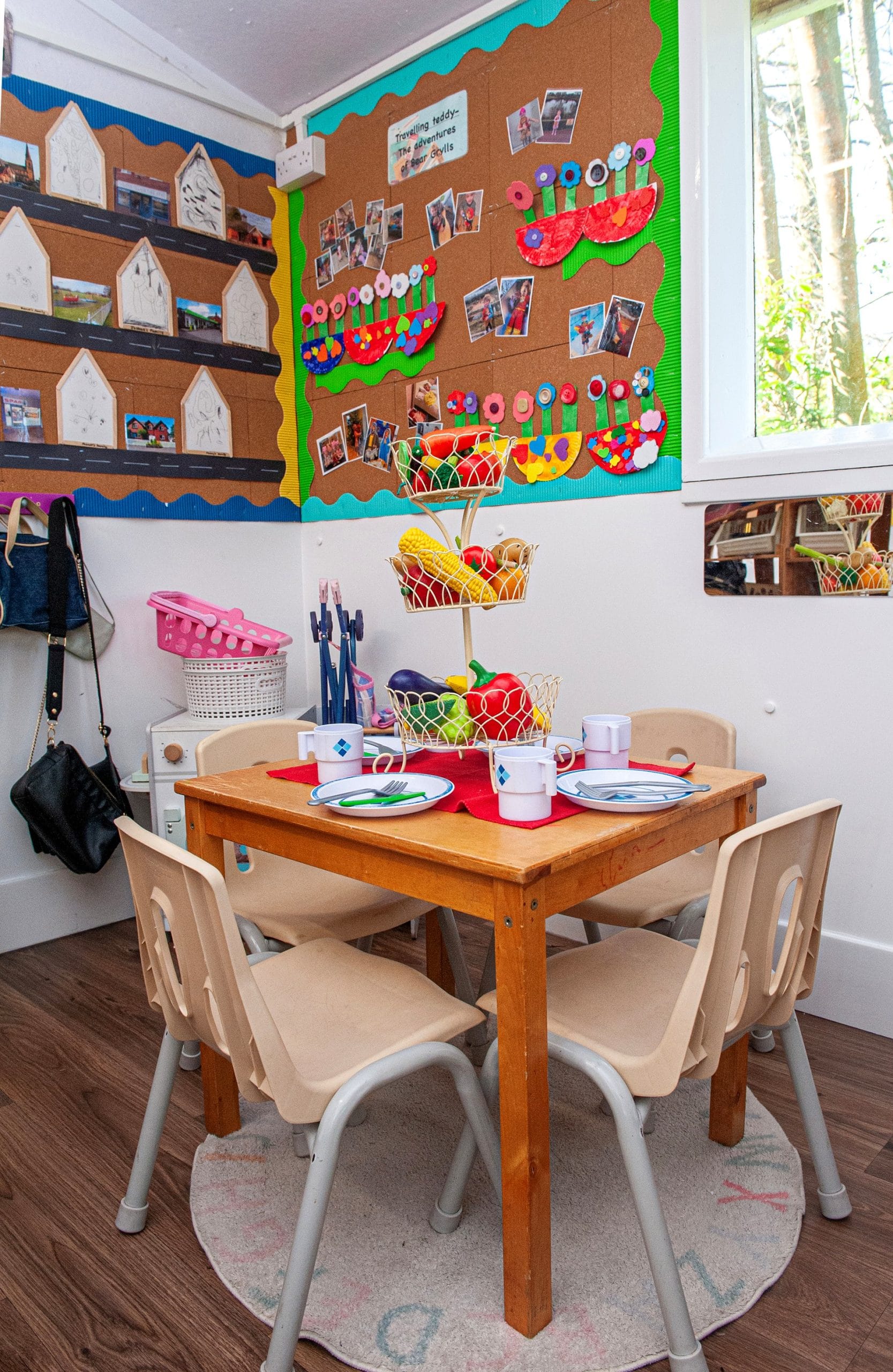 Here we offer structured routine, providing a balance of adult led and child initiated activities. The room offers frequent and safe access to the amazing outdoor play environment, where children enjoy running freely, climbing and exploring their natural environment.