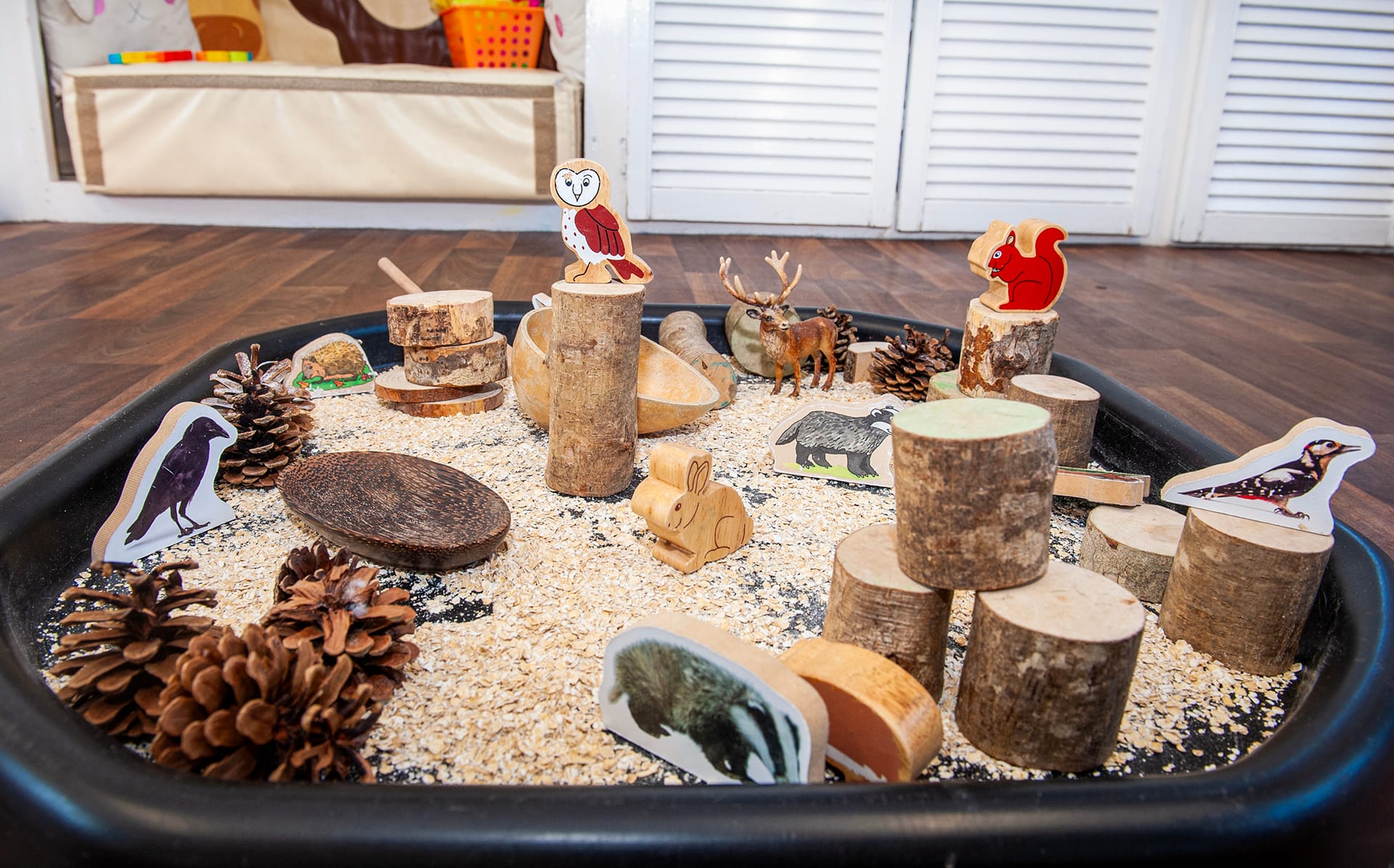 Here we offer structured routine, providing a balance of adult led and child initiated activities. The room offers frequent and safe access to the amazing outdoor play environment, where children enjoy running freely, climbing and exploring their natural environment.